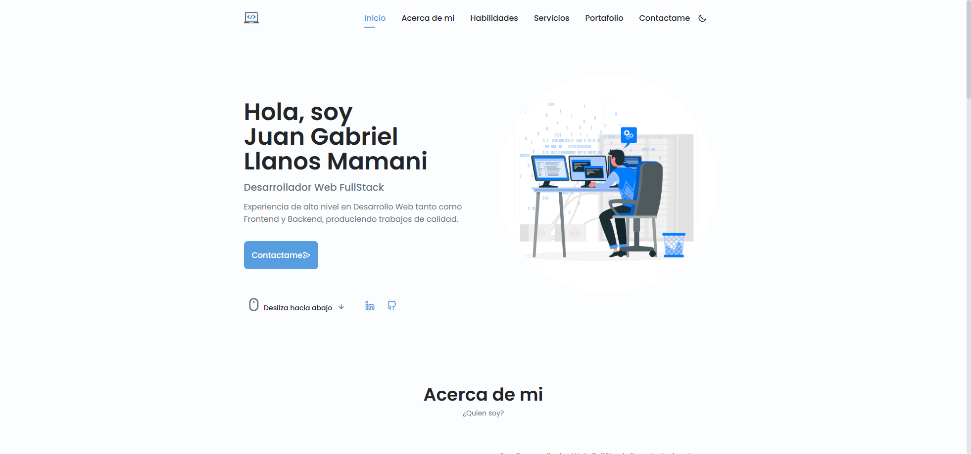 Portafolio web desarrollado utilizando HTML, CSS y JavaScript para presentar mis habilidades y proyectos de una manera visualmente atractiva e interactiva. El sitio está diseñado para ser responsivo y ofrecer una experiencia de usuario fluida en diferentes dispositivos.